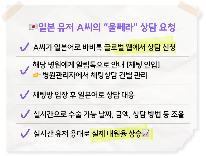 해외 유저도 이제, 바비톡에서 실시간 채팅으로 상담해요!
